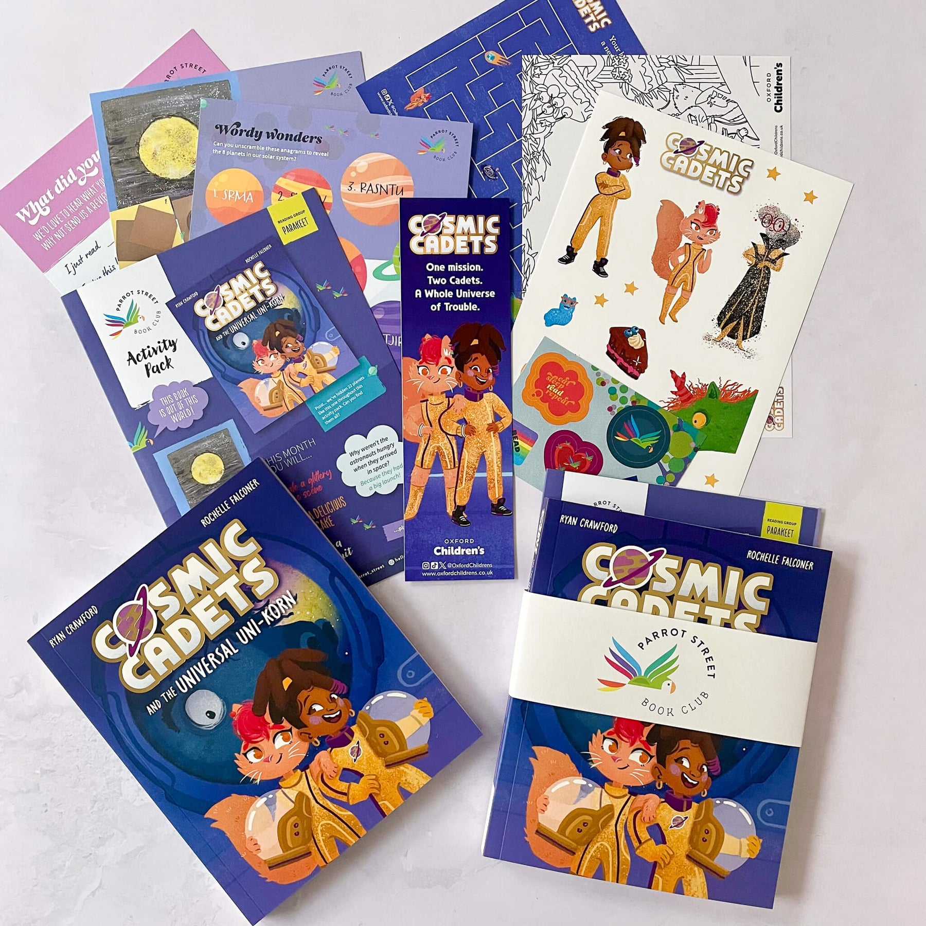 Young readers aged 5+ will be gripped by Cosmic Cadets and the Universal Uni-korn by Ryan Crawford. Plus they'll have fun with the accompanying activity pack which we created for Parrot Street Book Club subscribers in November 2025.