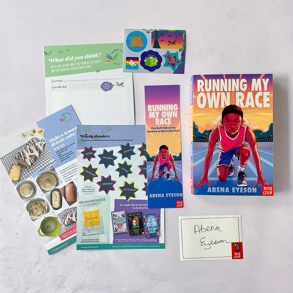 Young readers aged 8+ will find much to relate to in Running My Own Race by Abena Eyeson, plus they'll have fun with the accompanying activity pack, which we created for Parrot Street Book Club subscribers in September 2025.