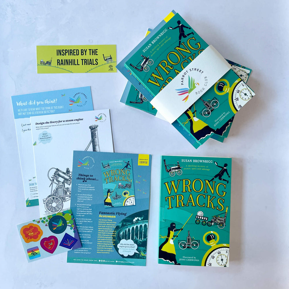 Young readers will be transported back in time by Wrong Tracks by Susan Brownrigg, plus they'll have fun with the accompanying activity pack, which we created for Parrot Street Book Club subscribers in January 2025.
